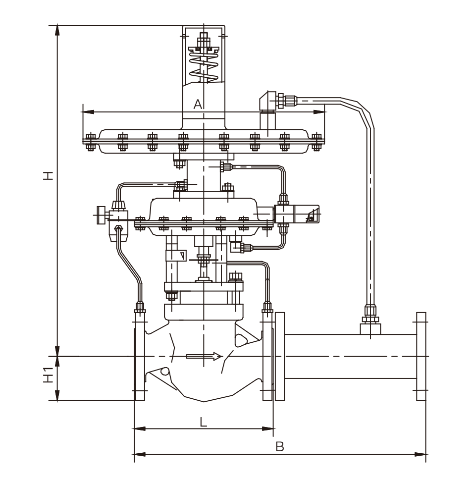 自力式带指挥器压力调节阀(即氮封装置)主要用于储罐顶部氮气压力恒定控制,自力式氮封阀是一种无须外来能源,以弹簧为动力核心利用被调介质自身的压力来控制阀芯位置变化,达到自动调节和稳定压力的目的,以保护罐内物料不被氮化及储罐的安全。该阀由ZZYVP快速泄放阀及ZZV自力式微压调节阀两大部分组成。快速泄放阀由压力控制器及ZMQ-16K型单座切断阀组成。