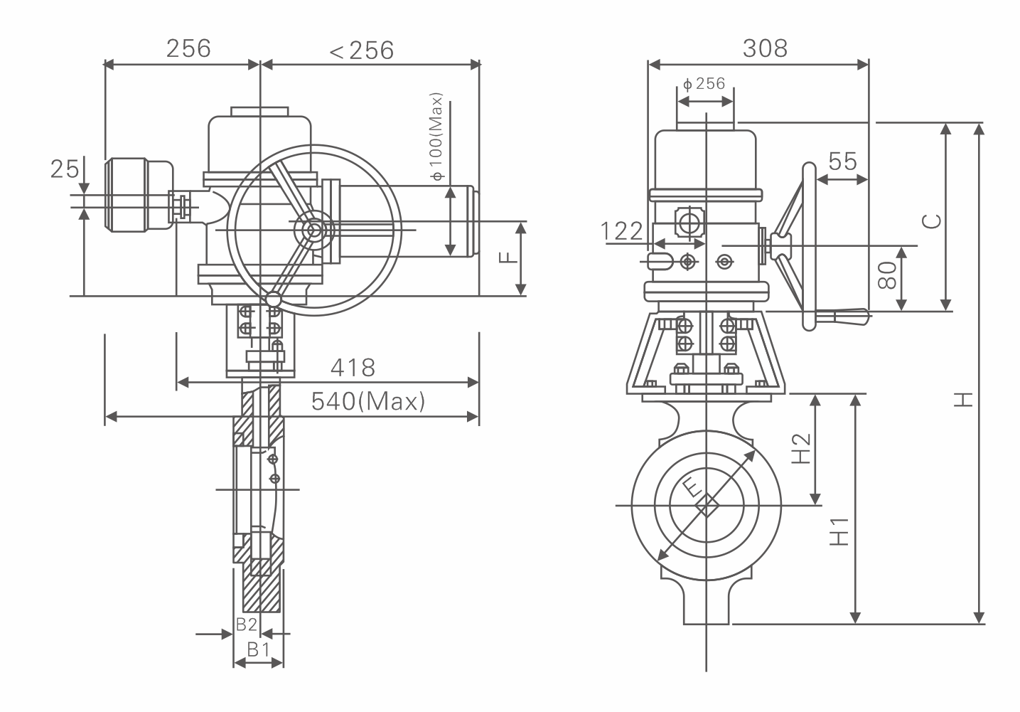 电动高性能蝶阀具有防火结构,连接方式可采用对夹式或用于大管径及管路经终端的凸耳式单法兰。设计阀座外面是活动的嵌件,法兰夹的越紧、耐压力大密封性好,更换阀座方便简单,只需取下嵌件就可取出阀座,不必拆卸阀板和阀轴,采用带有球形密封表面的双偏心蝶板,配以单片挠性唇式密封座,适用于要求可靠密封和良好调节特性的场合,由于双偏心蝶板的设计,具有严密的密封性能,较长的使用寿命。可作快速切断或调节流量之用。